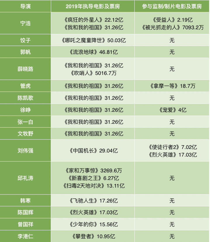 2019年电影票房累计TOP10的导演中,前三名是宁浩、饺子、郭帆,均是新晋导演,《少年的你》《误杀》等黑马电影背后也是曾国祥、柯汶利等新生代导演,包括今年,稳住国产电影票房第一把交椅的是管虎与《八佰》。冯小刚感叹,“时至今日,天地反复,一众新锐导演生龙活虎,摧营拔寨,屡创新高,一部影片动辄已是20亿起步,不过30亿都不好意思庆功。”