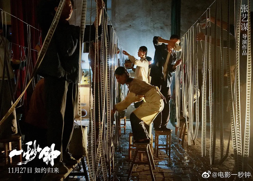 或许可以感受到,古稀之年的导演张艺谋,对于《一秒钟》尤为豁达和通透。这部电影从去年柏林电影节到今年厦门金鸡电影节,经过两次“技术原因”撤档,进行过删减和补拍,如《八佰》一样命途多舛。11月27日《一秒钟》终于上映,上映的前三天张艺谋的妻子陈婷还发布微博表示,“影院上映大家且看且珍惜”。