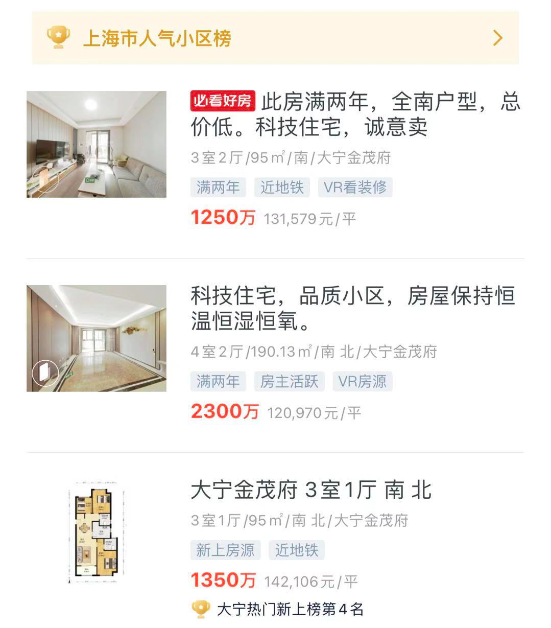 去年底今年初小三房成交价都是900多万,但如今金茂府挂牌最便宜的那一套,已经到了1250万。