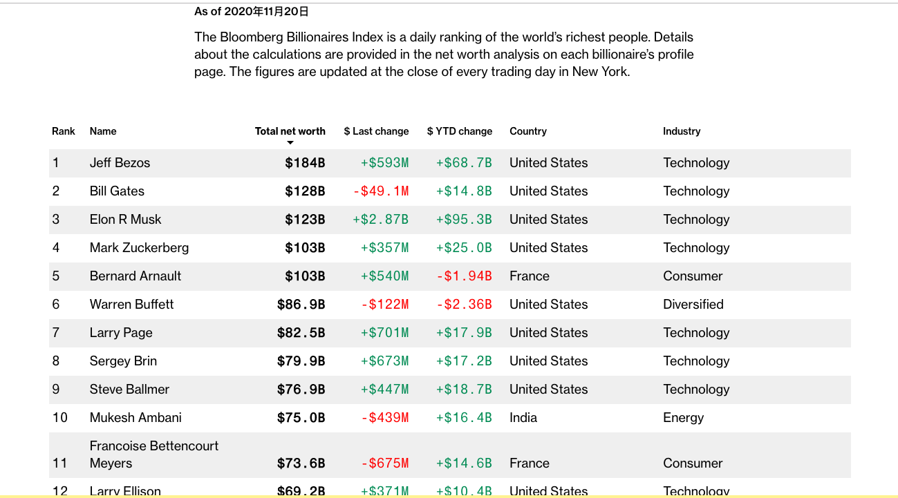 彭博亿万富豪榜单实时数据显示,截至11月20日,马斯克的个人财富达到1230亿美元,位居榜单第三位,距离比尔盖茨的差距仅剩50亿美元。