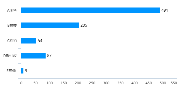 在陆玖财经的512份大学生抽样调查中,有491位大学生知道闲鱼,但是只有205位大学生知道转转,不足样本量的一半。