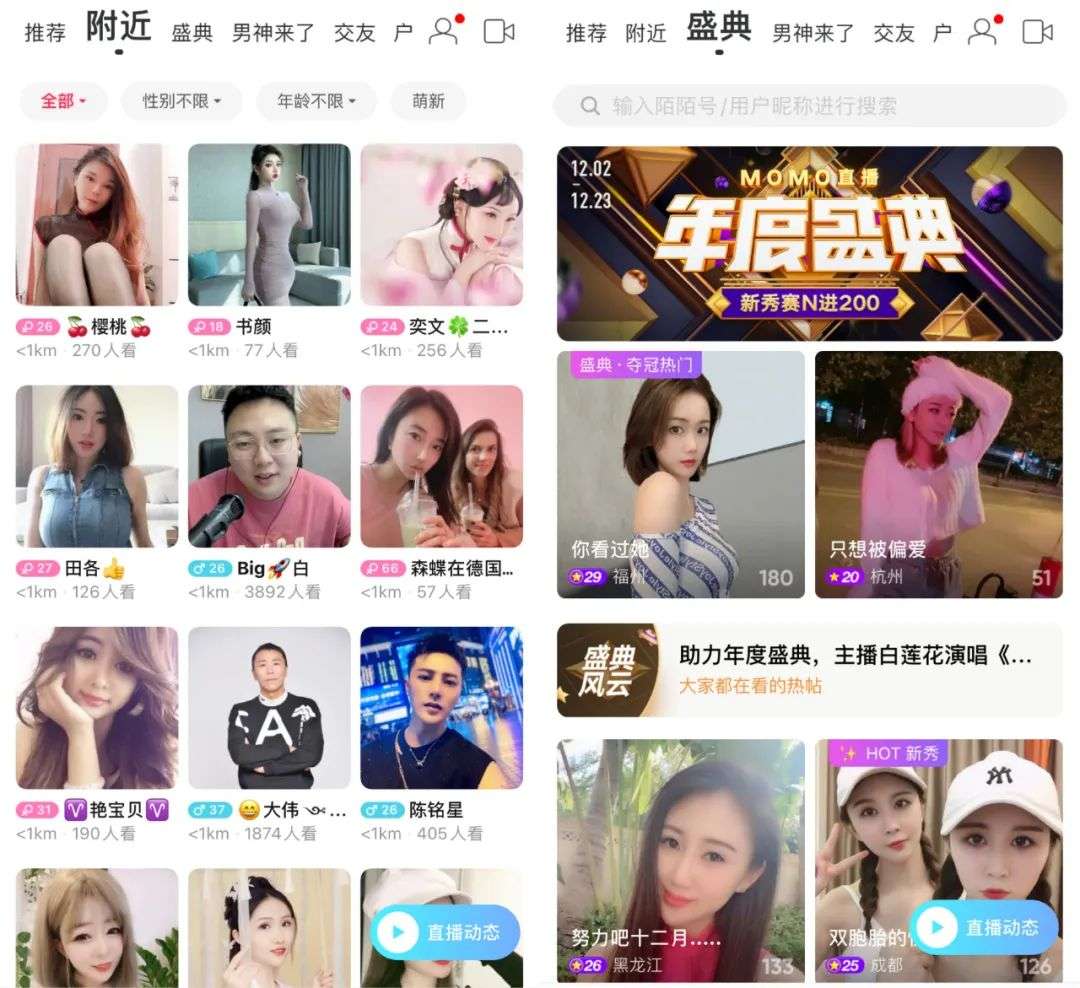 同时,陌陌上的人气大主播也在流失。今年九月前后,陌陌一姐狮大大“倒戈”抖音,据网友爆料,百变的舒舒、雪十狼、小凤九、三旺等陌陌人气主播也加入了抖音平台。