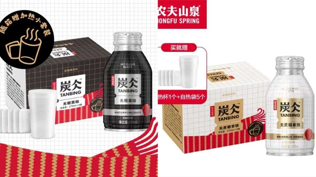 11月底,农夫山泉旗下炭仌咖啡推出自热套装,配置了自热杯+自热袋套装。