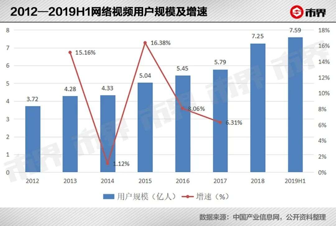 注:2019 年上半年在线视频用户增加到了 7.6 亿人,同比 2018 年上半年增长24%。