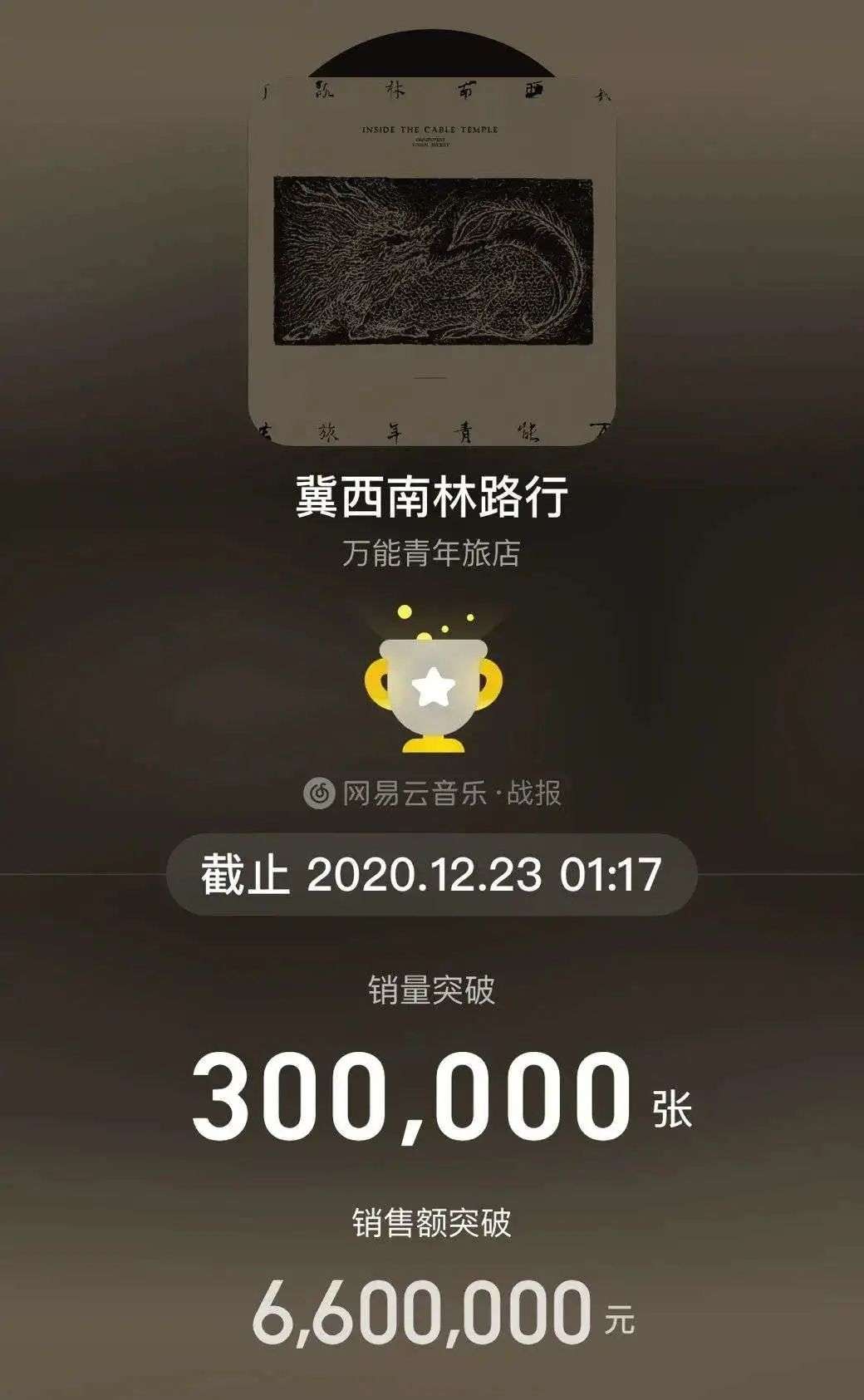 万青发第一张专辑的时候,科技的大时代还在酝酿。但十年后,数据已经能概括一切,最能反应万青的数据,出现在网易云音乐的销量界面中,上架一天,《冀西南林路行》销量突破三十万张。