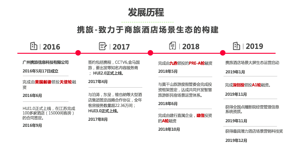 携旅定位于酒店场景数据服务运营商,致力于用数据智能技术为大旅游住宿企业提供商旅用户洞察、新零售场景系统构建、场景整合运营的产品和商业解决方案,助力大旅游企业数字化转型。携旅以集团和门店运营和服务数字化为抓手,通过核心的全域数据能力和对商业资产运营的理解,为品牌及门店提供基于产业数据智能的高效运营管理工具,为入住客人提供更优质更有趣的入住体验。
