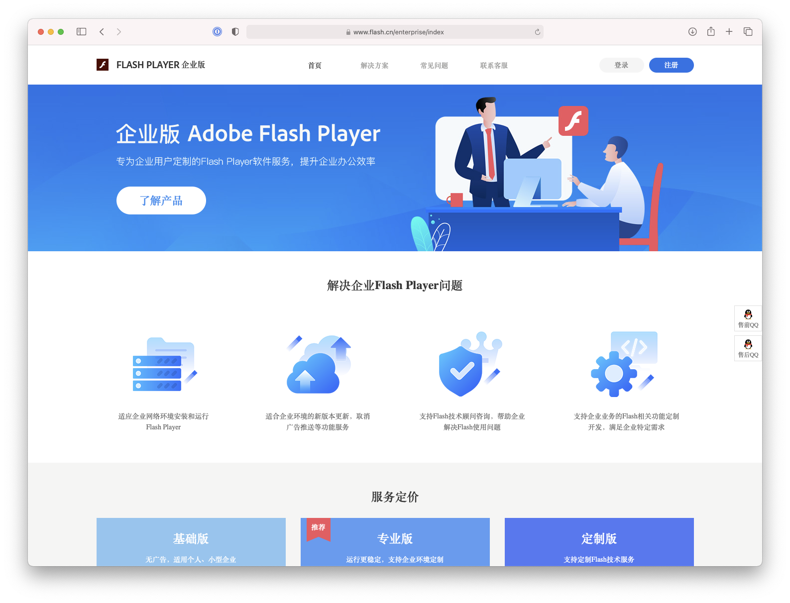 在2144的网页中,我们还能看到要收费的企业版Flash Player与「价格视情况而定」的教育采购版,相信这也是2144在中国大陆坚持运营Flash Player的原因。