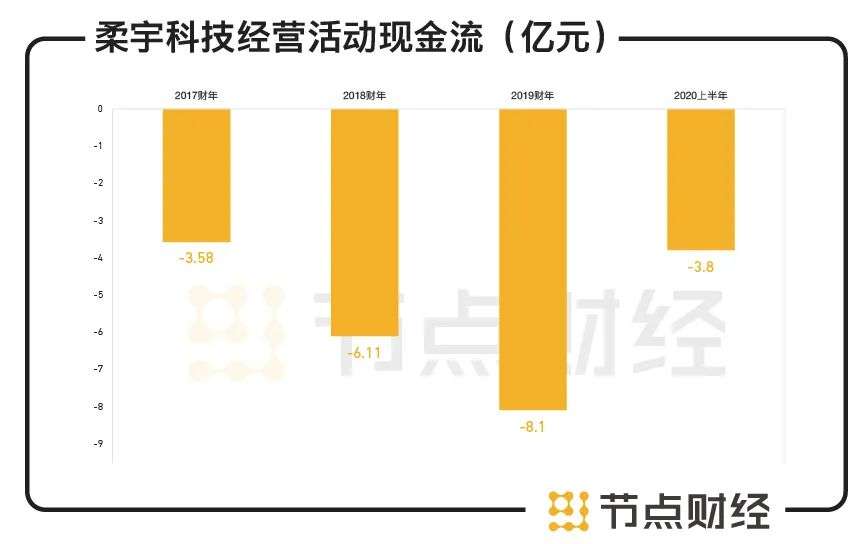 对柔宇科技来说,公司当下庞大的资金缺口已经成为无法回避的经营阻碍。招股书显示,2017年到2019年,公司的经营活动现金流量分别为-3.58亿元、-6.11亿元、-8.1亿元。资金紧缺的情况下,公司主要通过股权融资、债券融资补充流动资金。