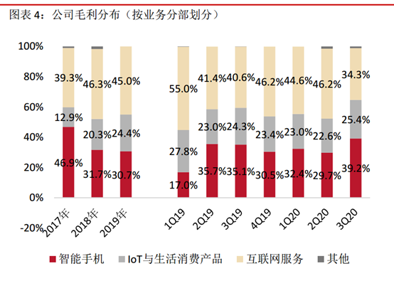 华为的报表不太详细,还是以小米为例,互联网业务的利润占比已经超过了手机和其他智能硬件: