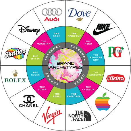 这些原型是由卡尔·荣格(Carl Jung)提出来的,他“将原型理解为源自集体无意识的普遍的、古老的模式和形象,是本能的心理对应物。它们具有遗传的潜能,当它们以形象的形式进入意识或在与外界的互动中表现为行为时,潜能便得以实现。例如,我最喜欢的一些品牌原型作品包括创造者、小丑、魔术师和看护者。