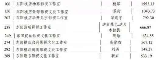 由于著名的影视拍摄基地横店就位于东阳,因此不少明星都把工作室设在东阳市,从这份数据可以挖到不少明星工作室在2018年的纳税收入: