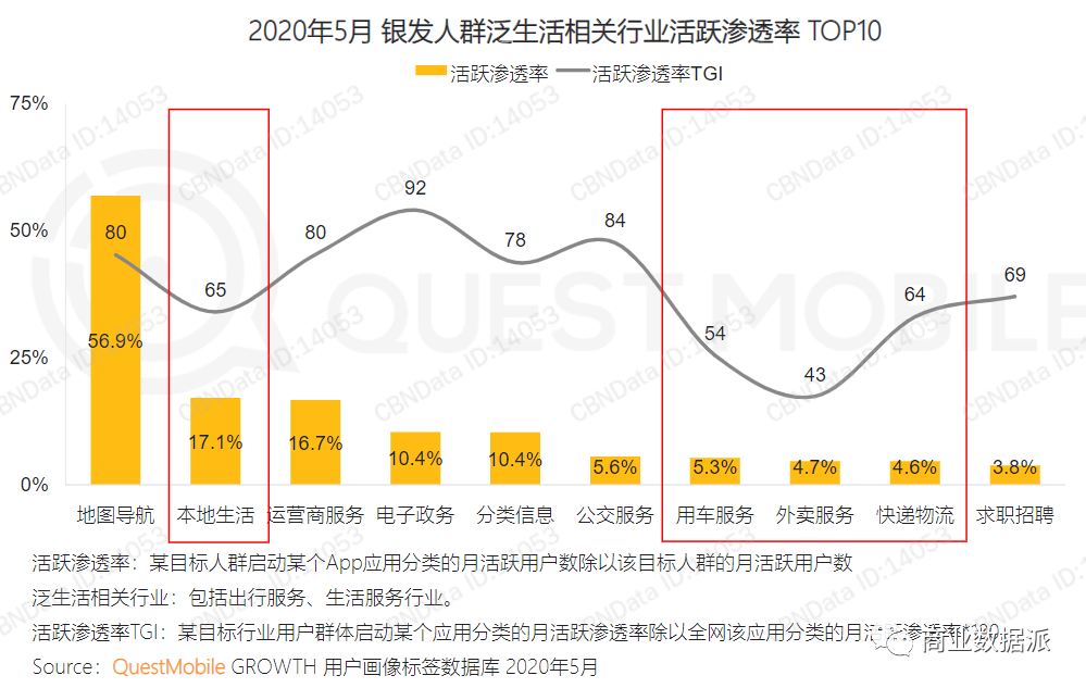 但现实却很残酷,多数已入网的银发人群还未形成互联网生活习惯。QuestMobile的数据显示,在老来网们创业的泛生活赛道中,除了地图导航外,本地生活、分类信息、用车服务等绝大多数互联网子领域,银发人群的渗透率均不超过20%,老年互联网市场仍然处于早期探索阶段。