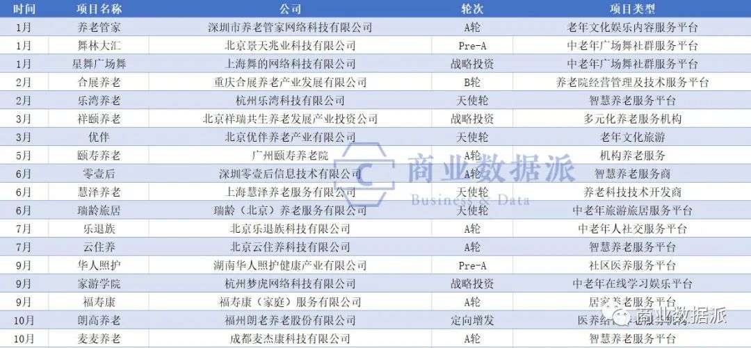 60+研究院的统计数据也显示,2018年全年在互联网老年市场的投融资案例共计18起,其中除朗高养老是定向增发外,均是在A轮融资及其之前。以2018年这份数据为蓝本,笔者再挨个去查如今的投融资情况,发现截止到2021年1月3日为止仍止步于A轮。