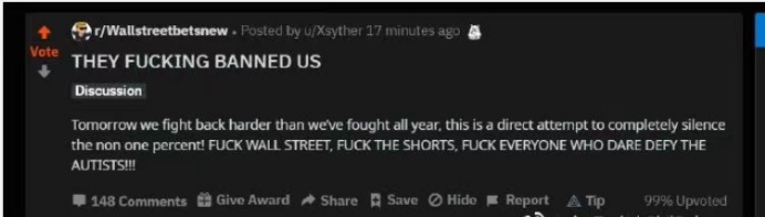 同时,散户们的大本营——WSB服务器被移除。