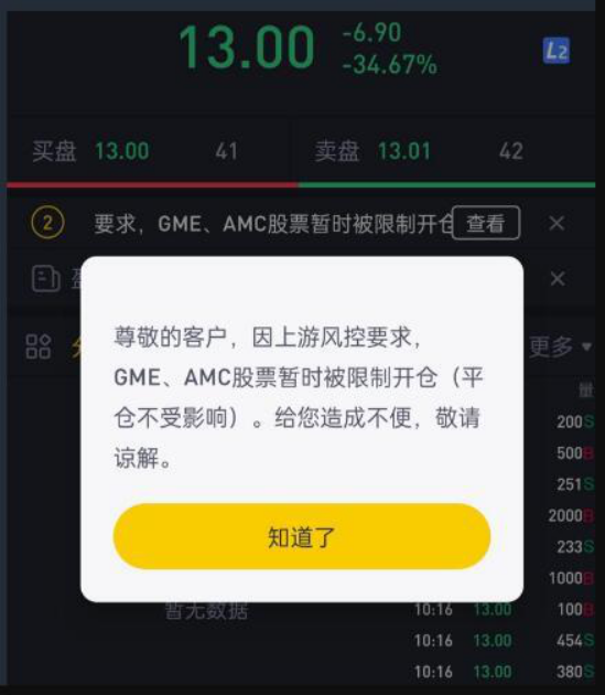 不只Robinhood,美国最大在线券商之一的盈透证券也限制了GME等热门股的股票和期权交易;富途控股表示,因上游限制,GME、AMC股票已被禁止开仓;另外,美国本土多家券商也禁止了部分此类股票的开仓交易。