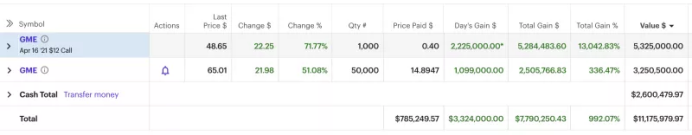 事实确实如此,随着GME股价飙升,散户们乐不可支,纷纷在论坛里晒出自己数十数百倍的收益。