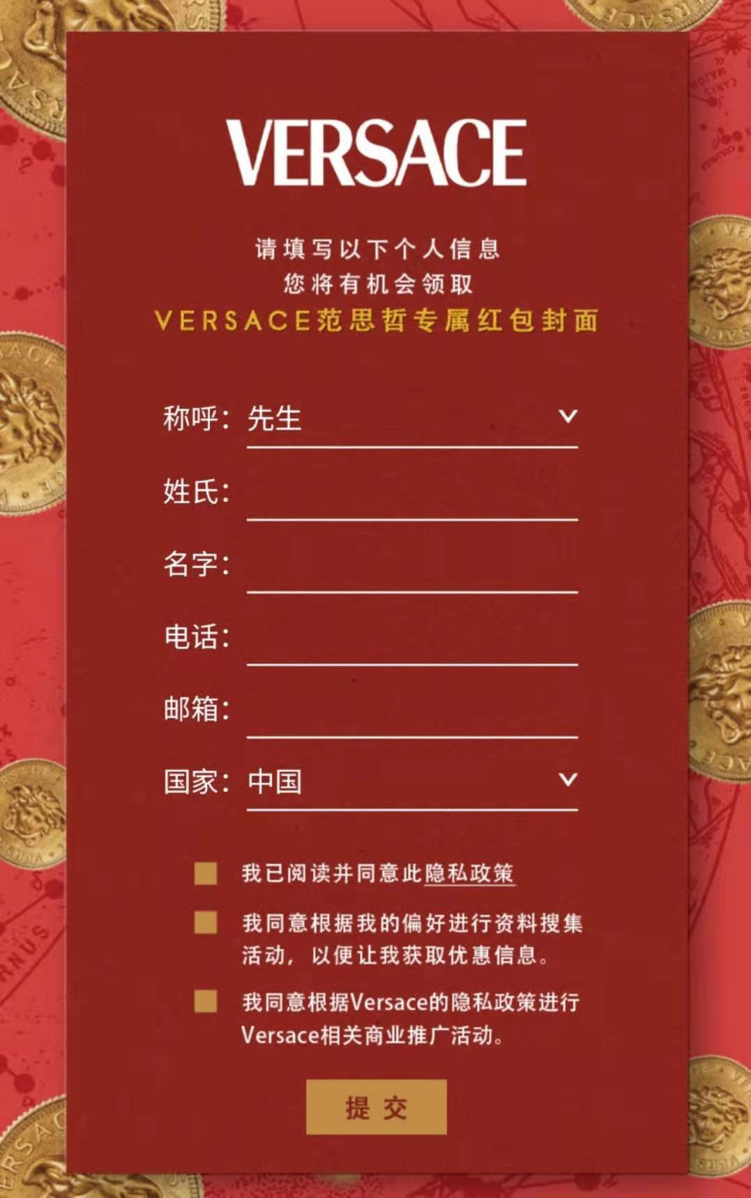 引流玩法上更是花样百出。最常见的,配合朋友圈广告、公众号广告抽奖互动,为自家小程序、视频号、公众号引流;再进一阶,可能注册会员或者下载App才能领取。例如,若要领取范思哲的专属红包封面,用户必须填写电话、邮箱等个人信息。