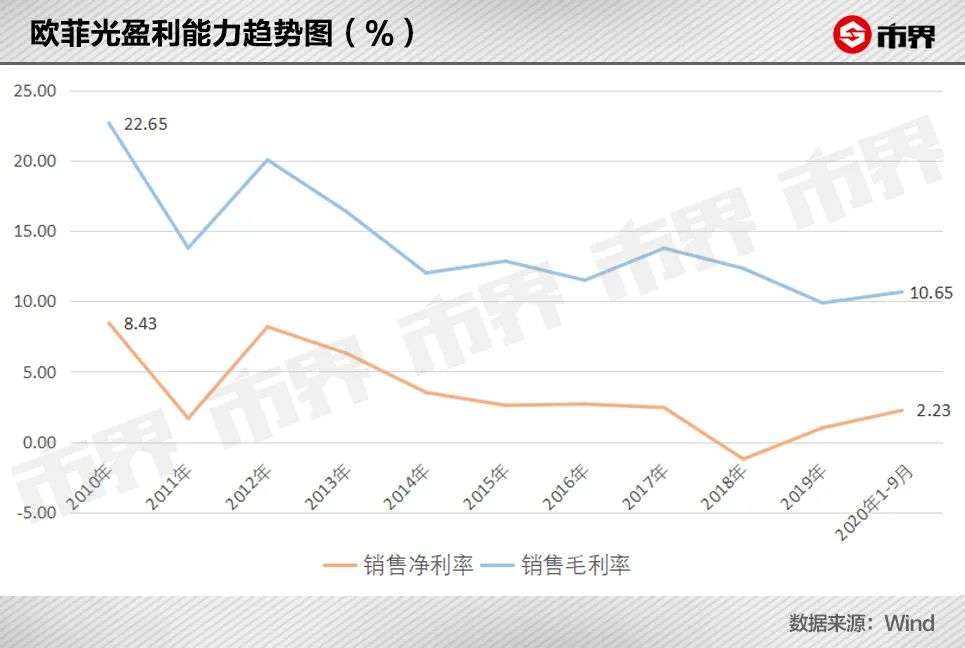 这之后,在苹果业务的高毛利的诱惑和品牌背书下,欧菲光步入了过度扩张的道路——依托一次又一次的募资和借款进行扩张,最终债台高筑,利润微薄。