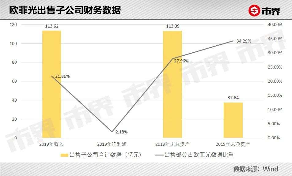 公告显示,截至2019年末,四家即将出售的子公司,总资产和净资产的合计数分别为113.39亿元和37.64亿元,占欧菲光总资产的比重分别为27.96%和34.29%。