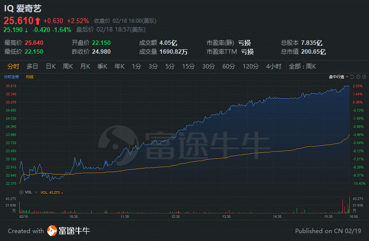 爱奇艺上演大逆转,收涨逾2.5%;