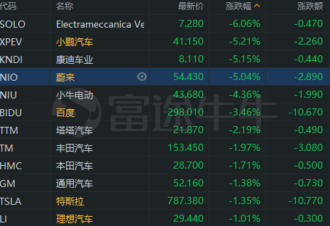 造车新势力延续跌势,小鹏跌超5%;