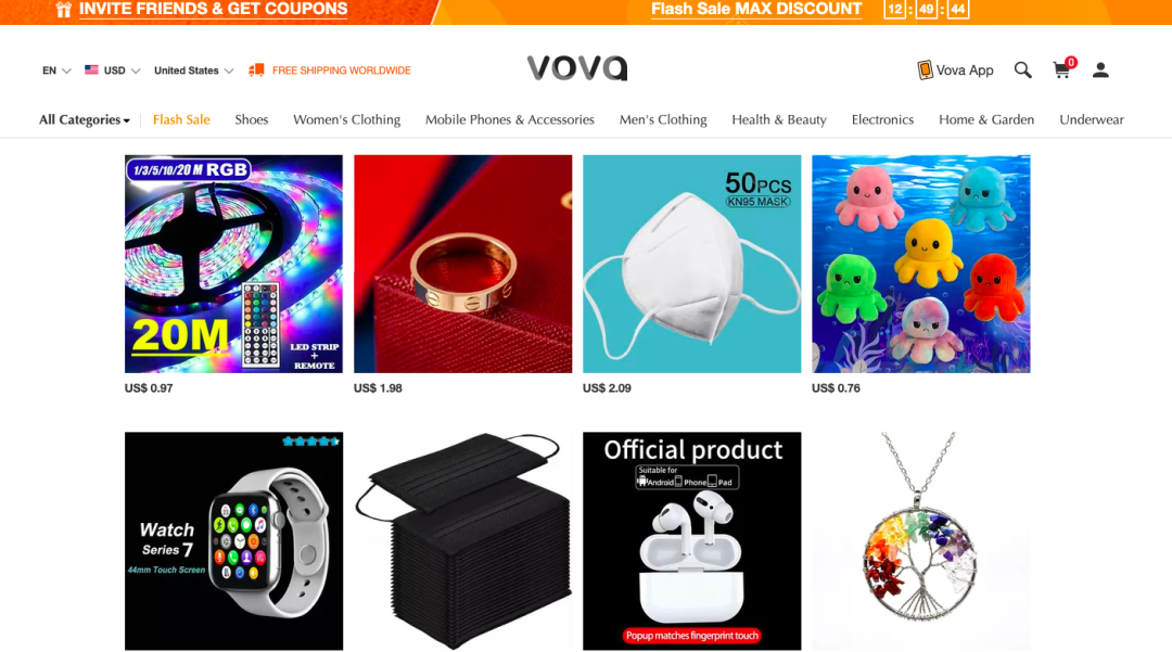 在海外,Vova对标的是美国电子商务初创企业Wish,客户群体是价格敏感消费者。据网易新闻报道,和Wish一样,Vova的市场也以最低价格出售几乎所有商品,从7美元的连衣裙到10美元的牛仔裤,再到45美元的智能手机应有尽有。Vova购物网站的设计与拼多多非常相似。为了加强其低价产品的供应,Vova一直在吸纳那些试图消化工厂过剩库存的中国供应商。