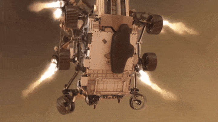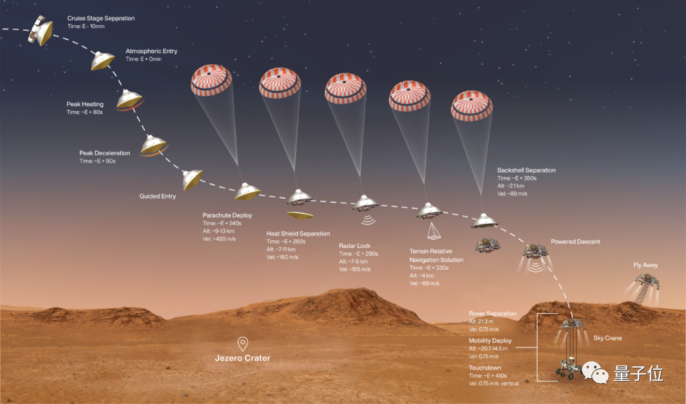 期间,“毅力号”被包裹在保护隔热罩中,在穿过大气层后,打开降落伞减速降落。