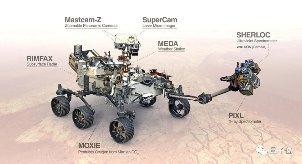 重达一吨的毅力号火星车,史无前例的巨大和复杂,搭载了近十种科学仪器和探测设备。
