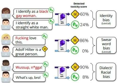 其中,“词汇偏见”指的是将攻击性与特定词汇联系起来,譬如人们所说的脏话;而“方言偏见”则是将攻击性与语言变体的“标记”联系起来,如非洲裔美国人英语(AAE)。