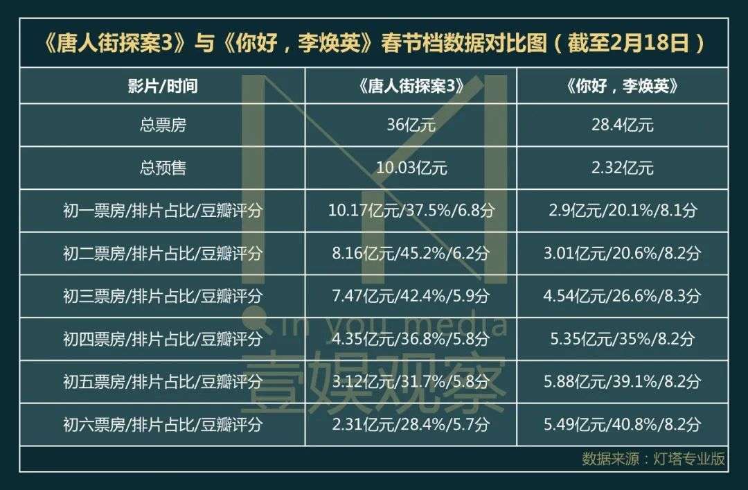 大年初四,《李焕英》以5.35亿元成为单日票房冠军,力压《唐探3》1亿票房,初五排片占比反超《唐探3》近10个百分点,初六的5.49亿元单日票房是《唐探3》的两倍之多。