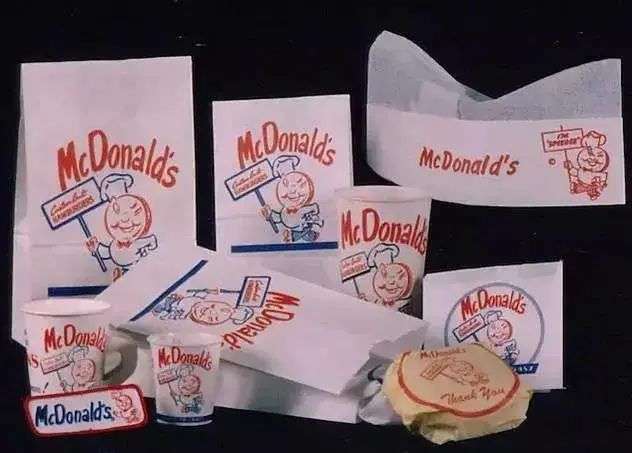 1955 年麦当劳的首款包装设计上是一个叫 Speedee 的厨师,也是表示快餐的意思