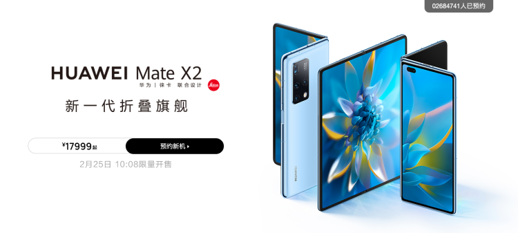 2月22日,华为 Mate X2 折叠屏手机正式亮相。尽管起售价近1万8千元,也挡不住消费者们的热情。截至成稿,华为官网显示预约人数已经超过 260 万人。
