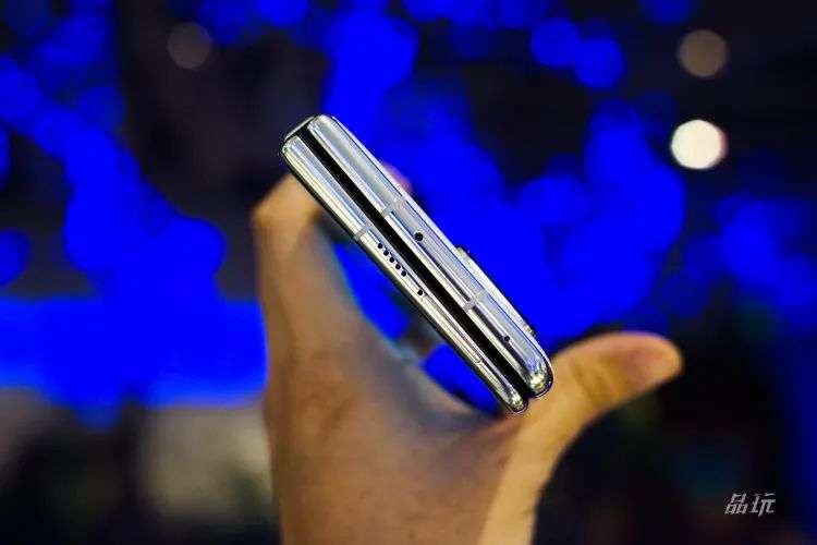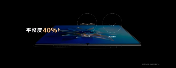 细节出功夫,华为 Mate X2 的左右两块结构并非是同一个厚度——这一情况在华为此前预热海报发布的时候,就已经有人提出来。华为 Mate X2 的左右两侧在展开状态下,呈现楔形,最薄处仅有 4.4mm。余承东称,该设计是华为首创的重心偏移设计,更利于单手握持。