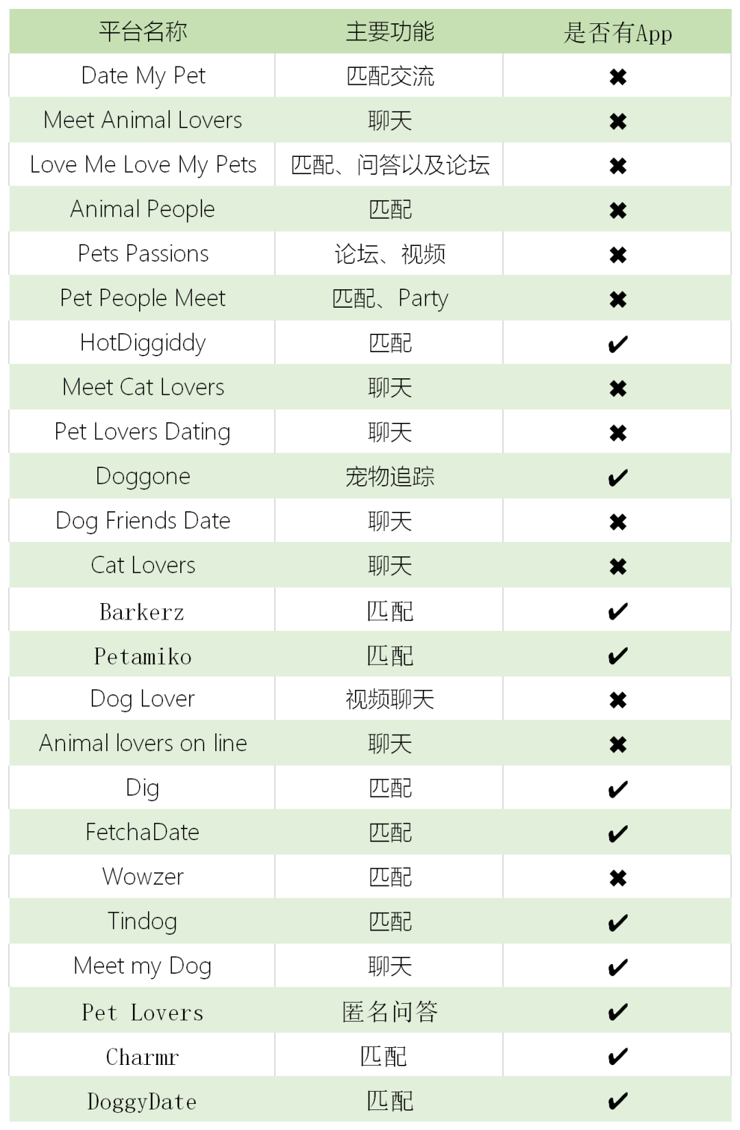 正是基于此,根据笔者不完全统计,目前市面上至少有 24 款用户数超 1 万的爱宠人士交友平台。在这些平台中真正被大众所熟知的寥寥无几,还有很多虽然应用没有下架、网站没有停运,但实际是好久没有在运营、更新。