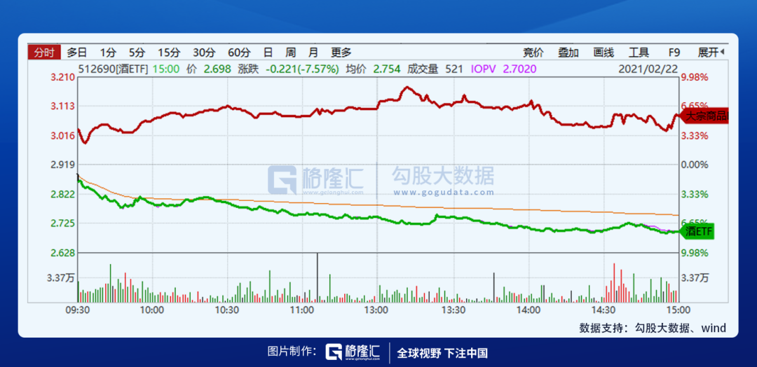 指数与整体行情背离的背后,是核心权重股的集体杀跌,同时低估值板块的周期股和小盘股的集体狂欢。最终白酒ETF跌了近8%,而大宗商品EFT差点涨停。