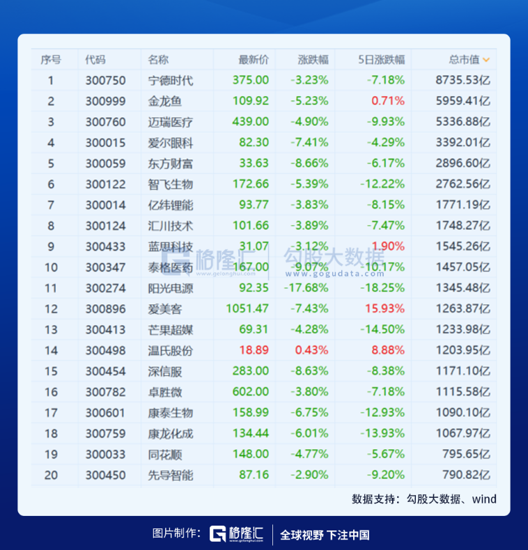 新能源车、粮油、医药、眼科、互联网券商、光伏、医美、媒体、免税、化工等行业概念中的各种茅无一例外全线惨跌。作为去年涨势最妖的千亿大白马阳光电源差点被摁到了跌停板。