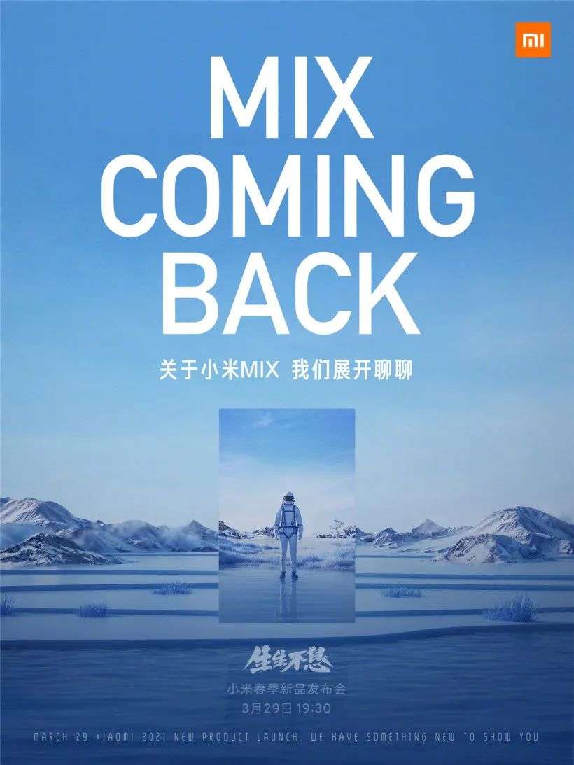 3月25日上午,小米官方微博宣布旗下最具黑科技色彩的MIX系列即将回归,根据之前的预热以及业内人士爆料,全新的MIX将会采用折叠屏设计,并有望成为小米史上售价最贵的可量产手机。