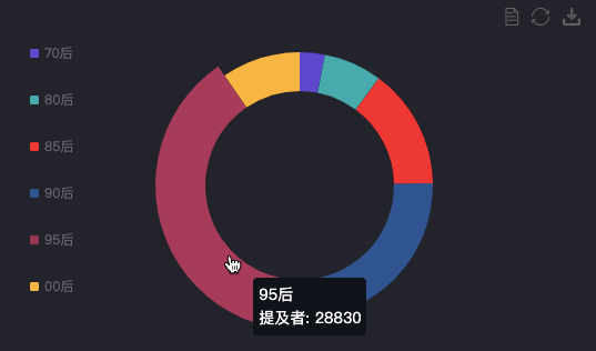 根据时趣洞察引擎,对于杨笠粉丝群体的监测,90后的年轻一代为主要粉丝群体,占比将近75%,其中95后更是为主力军。可见杨笠的个人影响力,在年轻用户中表现更为突出。