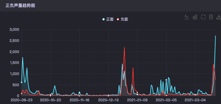 另一方面,“杨笠”的正负声量趋势图和社交声量趋势图整体走势,呈现出明显的相关性,2020年9月《吐槽大会》播出后,正向声量占据主导,负面声量的峰值出现在“杨笠代言英特尔”事件中,而随后的“杨笠站台宝洁电商直播”事件,虽然负面声量爆发,但仍远低于正向声量。所以,品牌与杨笠合作,一方面会极大程度提高品牌曝光度,但另一方面则要承担一定的负面声量风险。