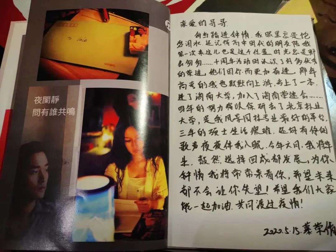 我在店里放了很多留言本,几十本已经被大家写的满满当当,都是一些大家想对哥哥说的话。