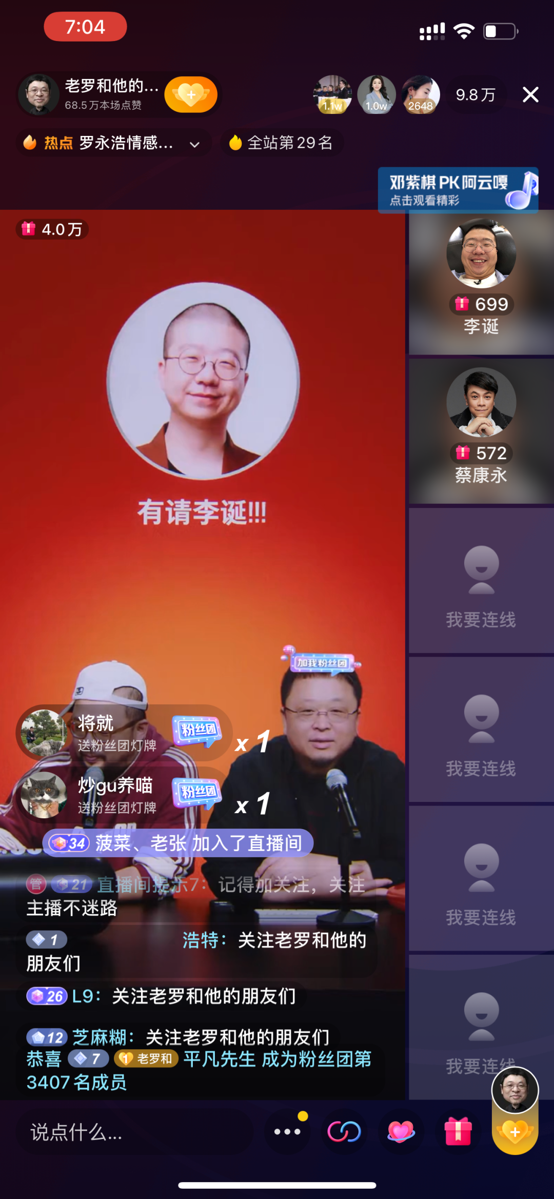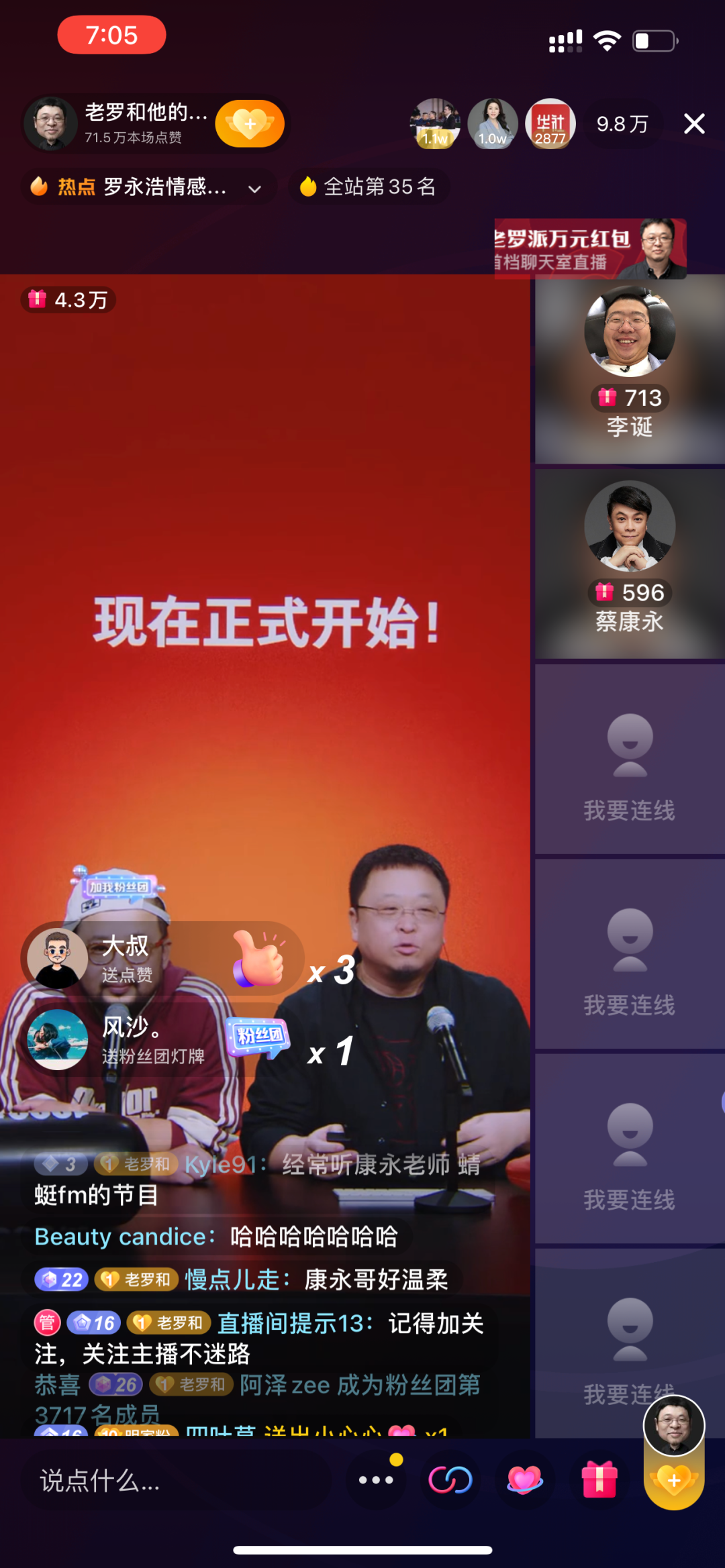 这也是罗永浩再次破圈,开启的首档聊天室系列直播。