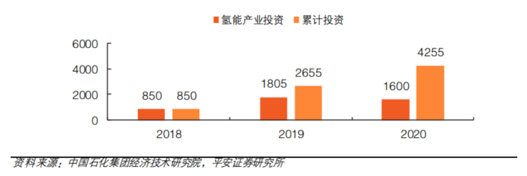 同时,近几年,氢能产业的投资规模在持续增长,疫情也并未对此积极局面产生影响。根据公开信息初步统计,2019年氢燃料电池产业相关投资及规划资金1805亿元。尽管受到疫情影响,2020年氢能产业整体发展速度有所放缓,但在投资方面,投资金额 1600 亿元,仅有11%左右的降幅,显示了市场对于氢能产业依旧充满信心。