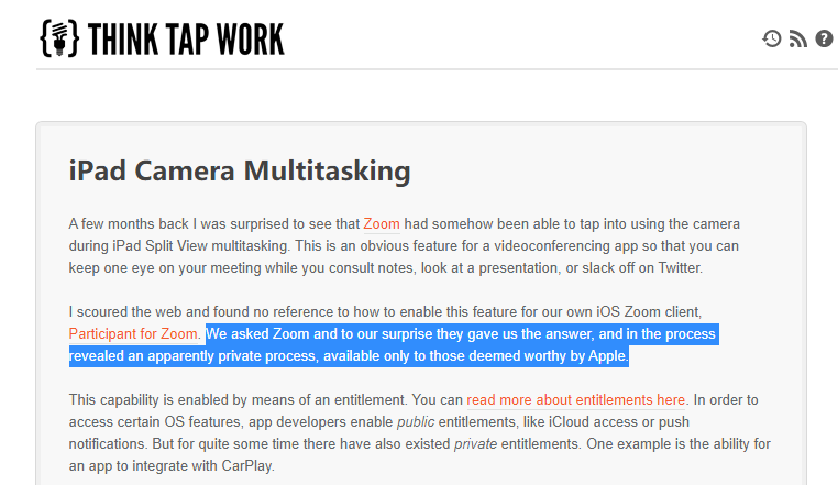 Zoom 提供了回应,暗示了确实有这么一个只对”苹果认为配得上“的少数开发者开放的特许功能的存在。