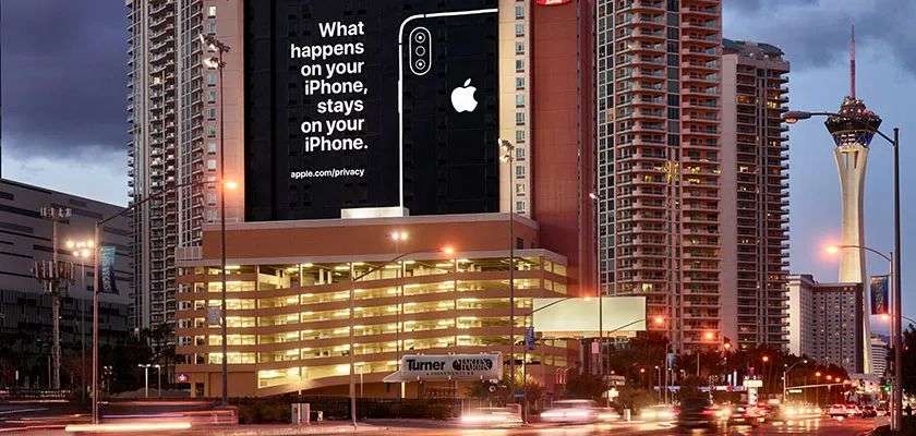 其二,是苹果在2019年拉斯维加斯 CES 大会期间打出的这则巨大广告: