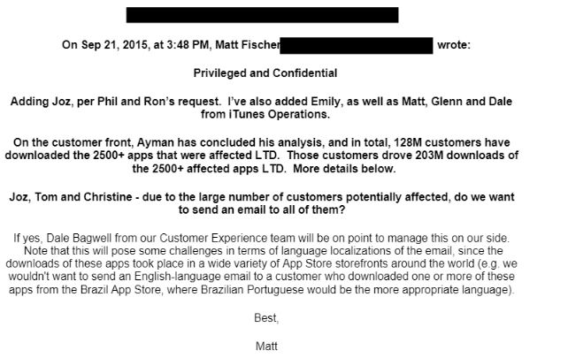 苹果内部讨论 XcodeGhost 事件善后处理的邮件串,进一步揭示了苹果的冷处理过程: