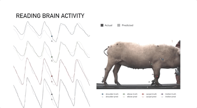 当工作人员抚摸它的鼻子时,猪的神经开始兴奋。设备连接的1024个电极作用下,它脑内的电波信号,清晰可见。