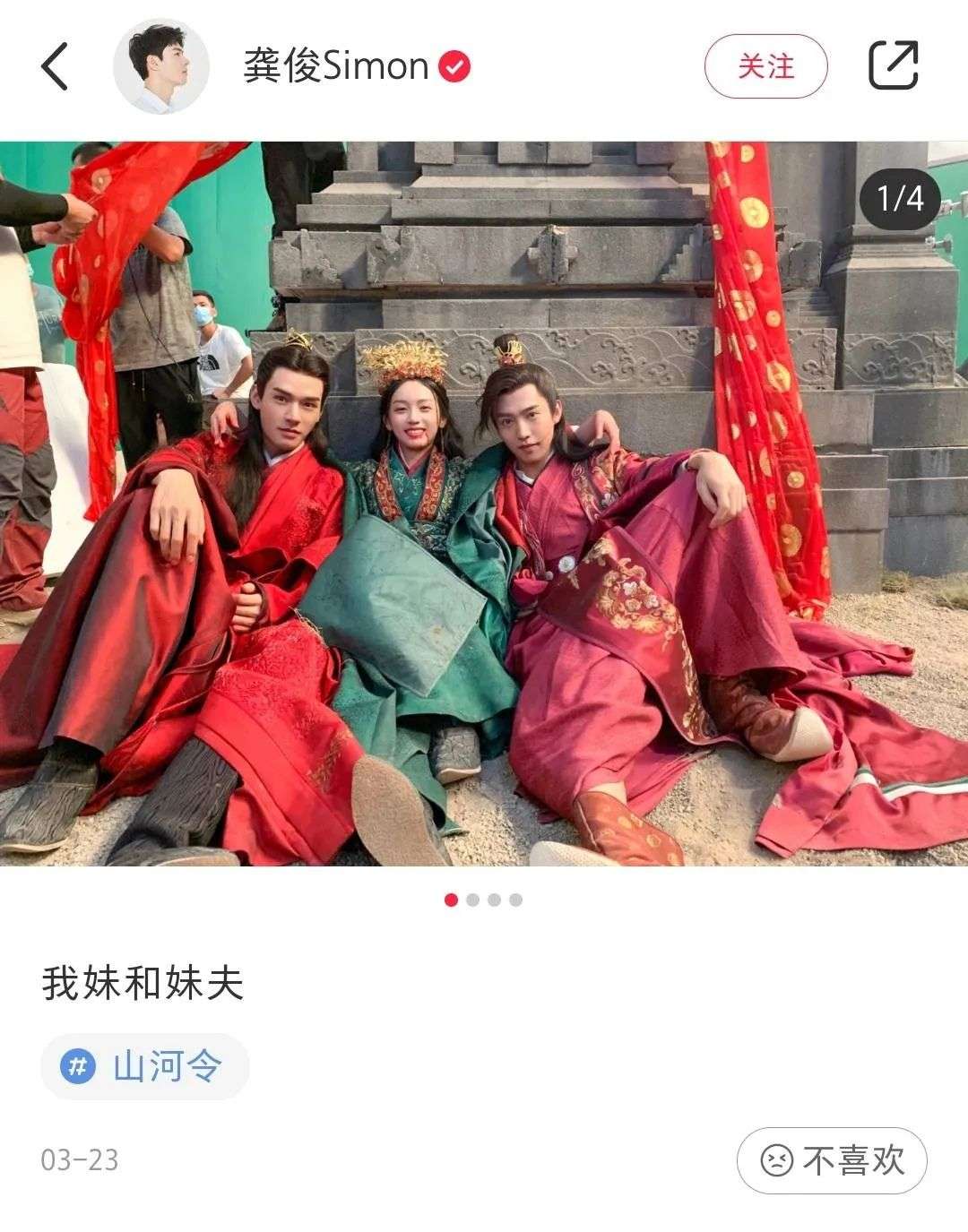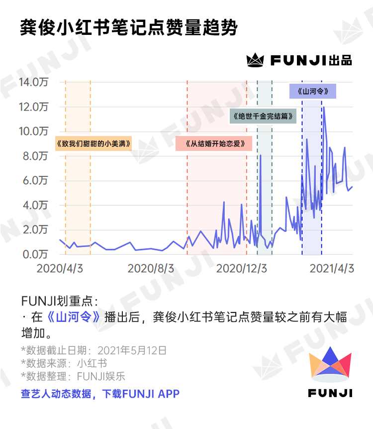 3月23日龚俊发布的一条片场合影笔记更达到了12万点赞量。