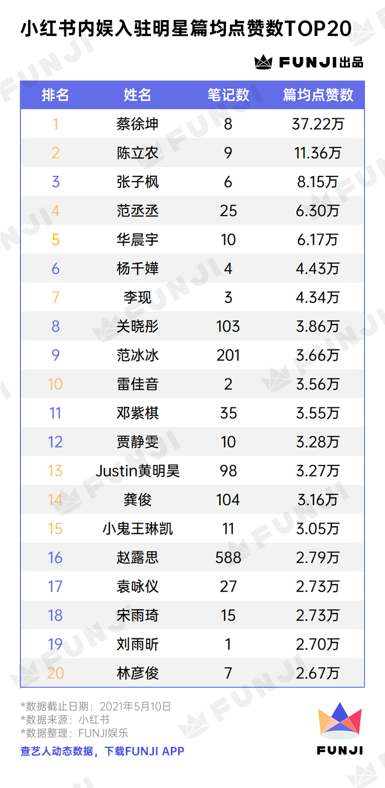 在小红书“买房”的艺人这么多,谁又成了平台“顶流”呢?FUNJI研究了这些艺人在小红书上的数据表现,统计出了最火的明星薯们。