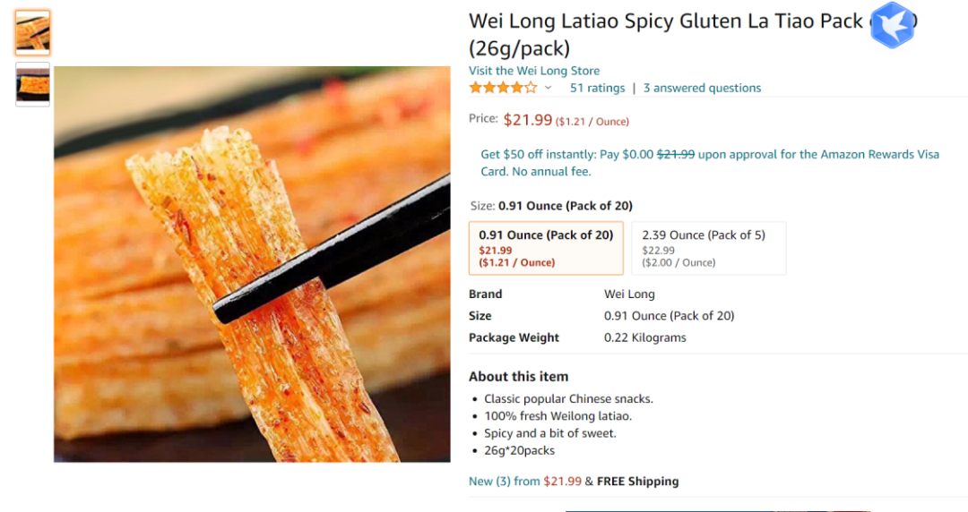 歪果仁在拜倒在老干妈裙下之后,又把亚马逊上一袋约160RMB的初代卫龙捧上神坛。