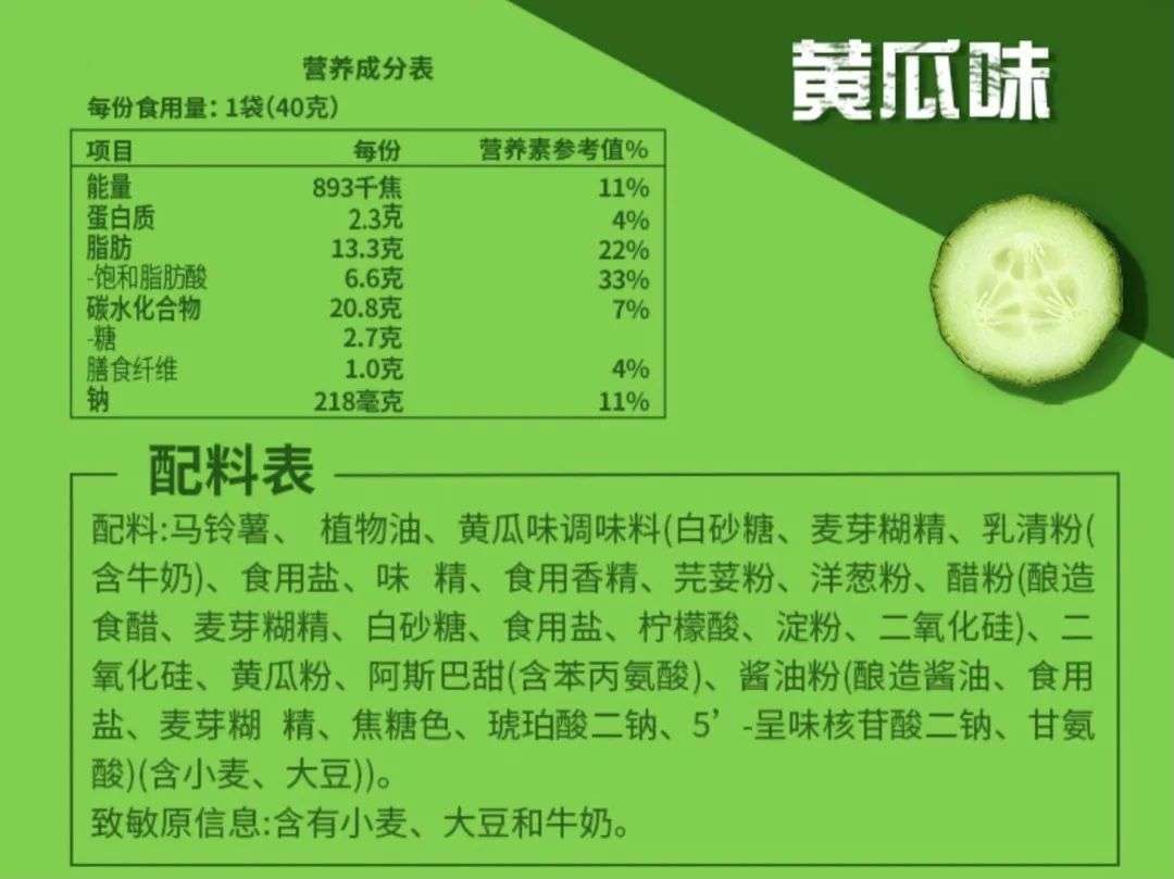 乐事袋装清新清爽黄瓜味薯片配料表 / 百事集团官方网站
